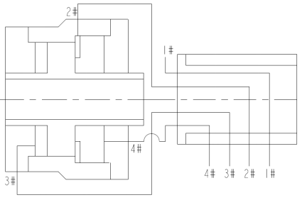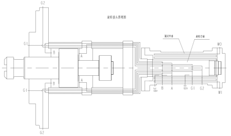 Udvidningscylinderen for spole består af en dobbeltriggende hydraulisk cylinder kombineret med et roterende led. Dens primære funktion er at udvide og trække tromlediameteren på spoler eller afgrebespoler sammen ved at forlænge og trække cylinderen under rotation. For præcis hubkontrol kan en positionsføler monteres, eventuelt suppleret med en trykføler til nøjagtig overvågning og styring af træk- og skubbevægelser. To afløbs-/trykteststuds er placeret øverst på det roterende led, mens hver side har fire til/og fra-studs – to i brug og de øvrige lukkede. Afløbsstudsed nederst skal forbindes til returlinjen for at sikre jævn olieafstrømning og forhindre utværtslækage forårsaget af bagtryk over 0,5 bar. Under det roterende led findes et hul til et momentarm, der fastgør en rotationshæmmer (svævende positionering for at undgå aksialbelastning). Flangeoverfladen skal stå vinkelret på rotationsaksen, så radialt løb er ≤1 mm. Olie- og lækagerørledninger skal være sikkert fastgjort for at undgå radiale eller aksiale kræfter på det roterende led. Til varmvalsede spoler med høj temperatur, hvor kølevand er nødvendigt, er der til rådighed udvidningscylindre med integreret vandrotationsled.