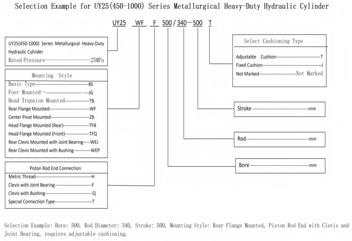 UY25(φ450-1000) sarjan metallurgian raskas käyttöön tarkoitettu hydraulisylinteri