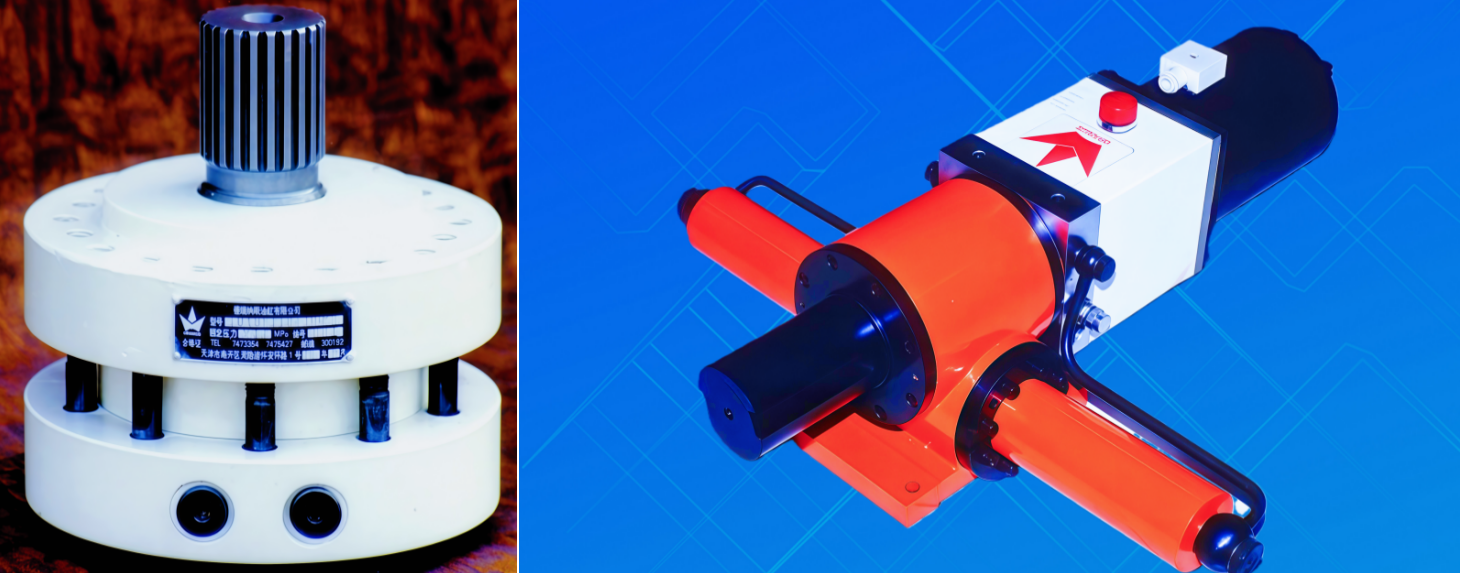 En kugghjulsrotorisk hydraulisk aktuator omvandlar hydraulisk energi till oscillerande eller vinklad rörelse. Den linjära växelverkande rörelsen i hydraulcylindern driver kugghjulet, som griper in med pinjongearet för att generera rotation i båda riktningar. Cylinderns kraft förstärks mekaniskt till vridmoment genom kugghjuls- och pinjongtransmissionen, och svängvinkeln är proportionell mot kugghjulets slag, vilket uppnår 0°–720°rotation.